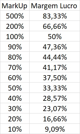 Relação de Markup / Margem