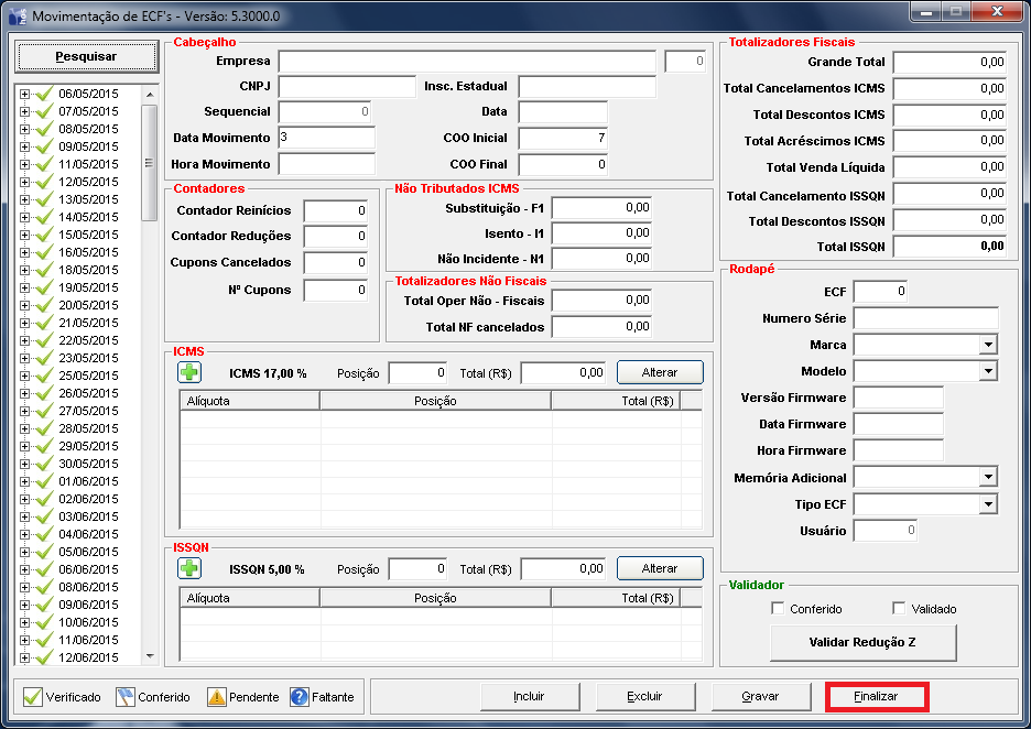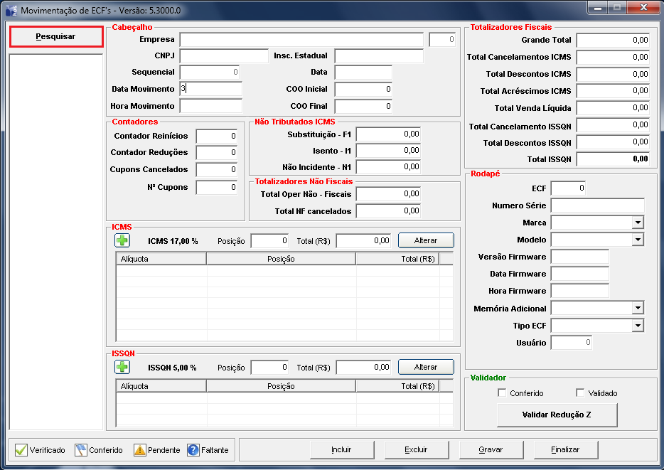 Após uma pequena espera, será exibida a tela Movimentação de ECF’s. Nela, clique em pesquisar.