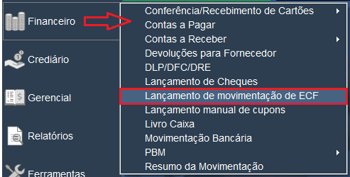Acesse no HOS Farma o menu Financeiro > Lançamento de movimentação de EFC.