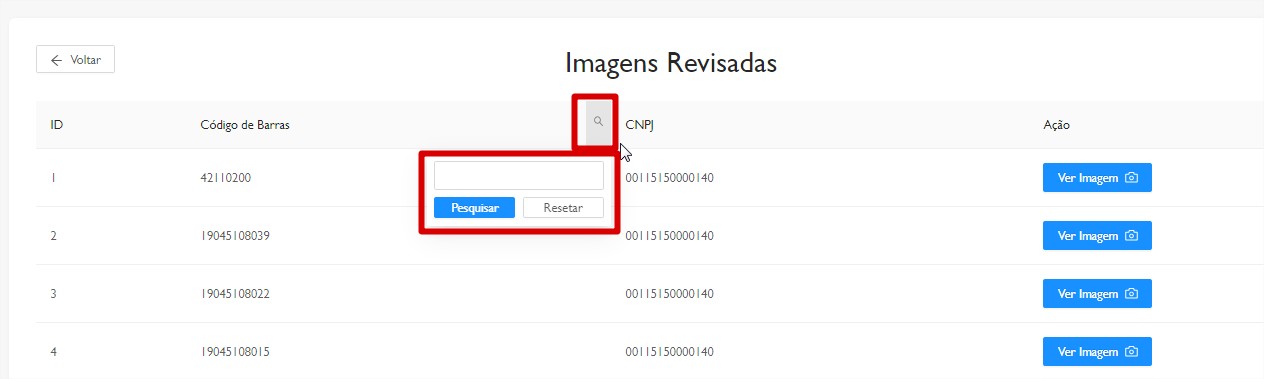 pesquisar uma foto por Código de barras, basta clicar na lupa na coluna “Código de Barras”,