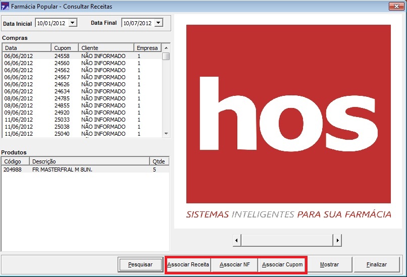 2º Passo) Após informar o período entre Data Inicial e Data Final é possível listar as vendas da Farmácia Popular, clicando no botão "Pesquisar"