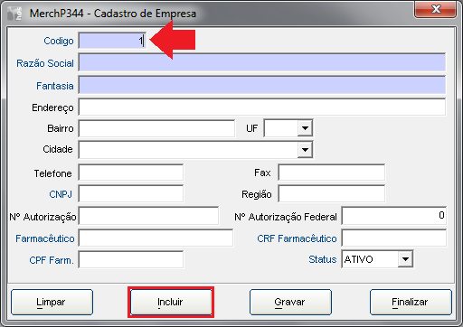 Você pode consultar a empresa a empresa existente ou Incluir uma nova;