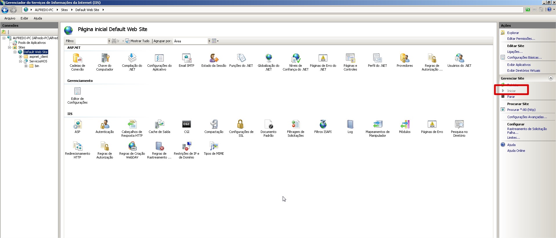 7. Após isso é necessário Iniciar o IIS.