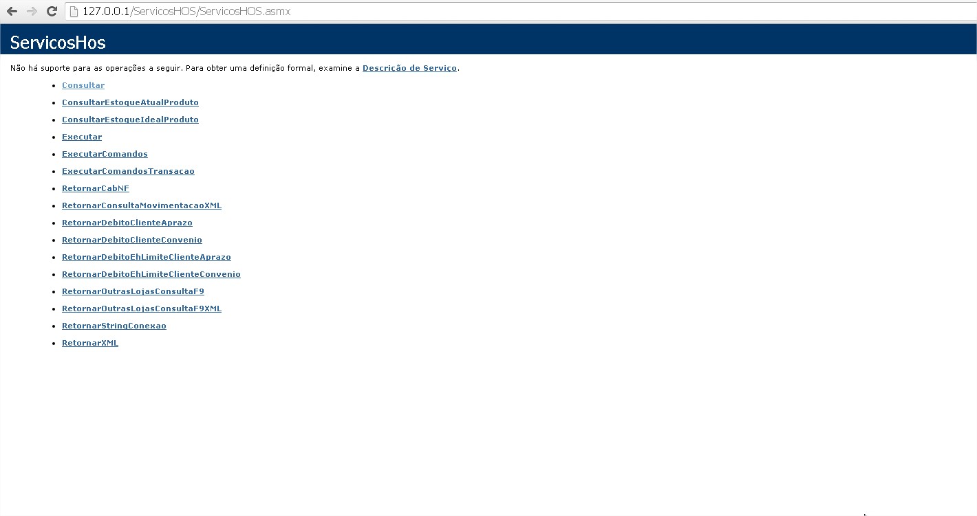 8. Após isso devemos fazer o teste do IIS no navegador. Se ele abrir a tela abaixo, o WebService está funcionando.