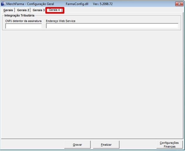 Nas configurações gerais do MercFarma (Ferramentas -> Configurações -> Gerais -> Gerais 4), foram adicionados dois campos necessários a integração com o grupo Imendes: