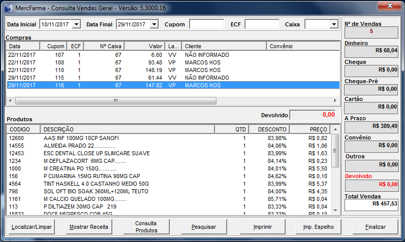 7 - Clicando sobre um cupom específico, aparece o detalhamento dos itens do cupom.