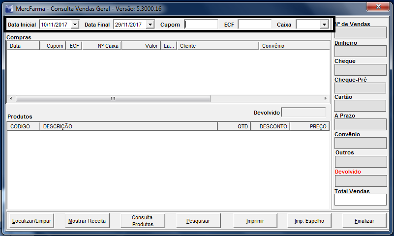3 - Informe os filtros que deseja utilizar como: Período, Cupom, Caixa e ECF.