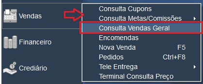 1 - Acesse o menu: Vendas -> Consultas Vendas Geral.
