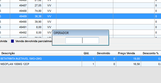4 - Informar o operador que está realizando a devolução