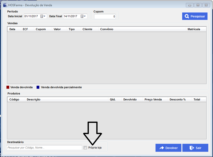 3 - Na lista de vendas, selecionar a venda desejada e clicar no botão Devolver.