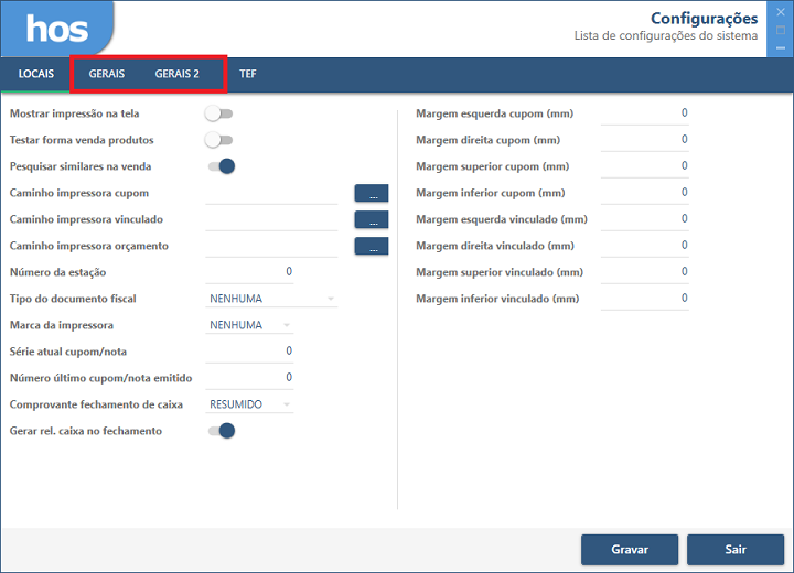 Inicialmente as abas Gerais e Gerais2 serão sincronizadas com as configurações do FC antigo.