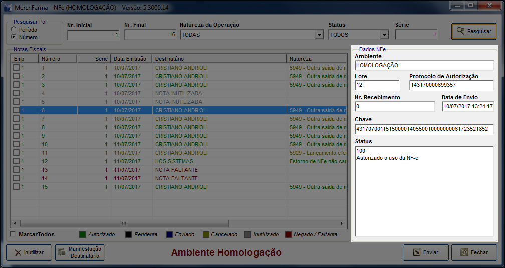Ambiente: Ambiente no qual foi emitido a NFe