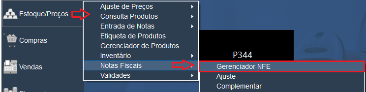 1. Farma > Estoque / Preços > Notas Fiscais > Gerenciador de NFe