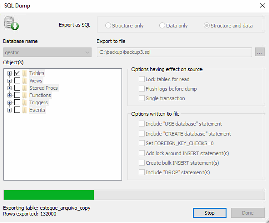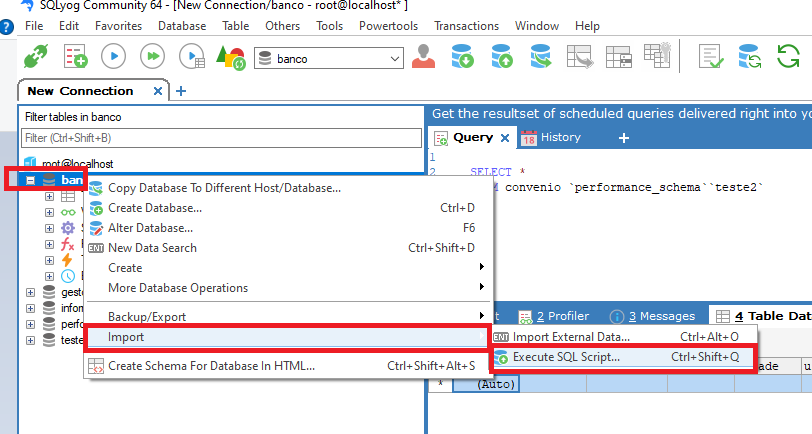 Passo 2 - O SQLYog gerou um arquivo único de Backup. Agora pode ser feita a restauração na sua máquina;