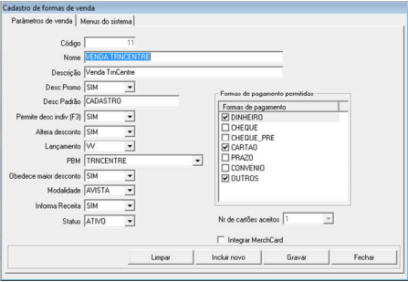 Lembre-se de cadastrar o Tipo de Venda Portal da Drogaria no cadastro de