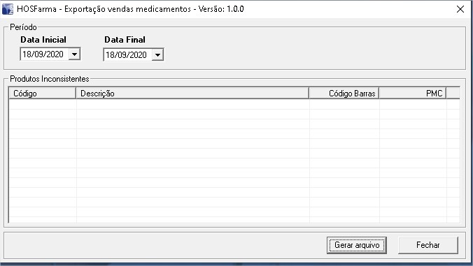 Obs.: Caso tenham produtos sem código de barras ou PMC, serão listados na tela de produtos inconsistentes.