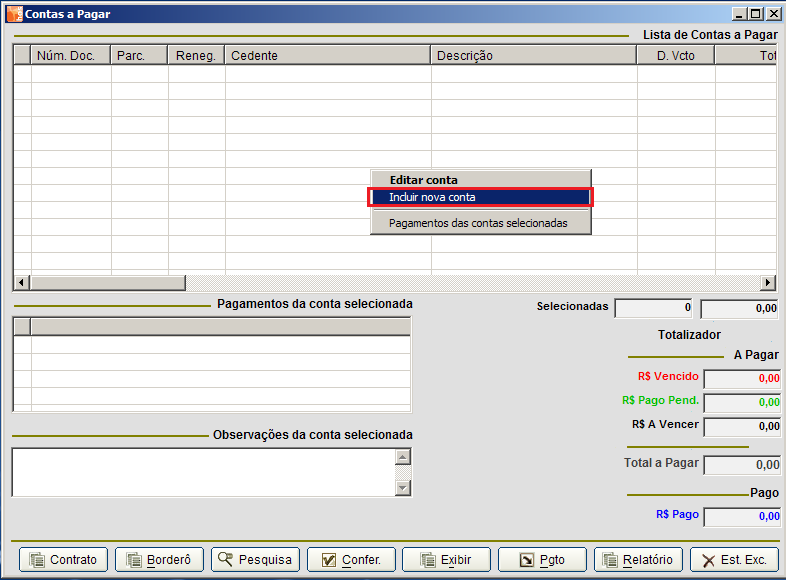 Clique com o botão direito e vá na opção Incluir Nova Conta;