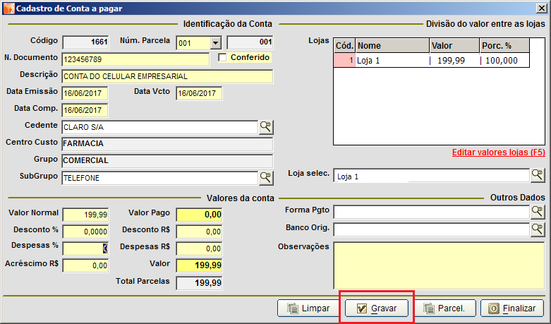 Após esse cadastro, você deve ir em Financeiro > Contas a Pagar