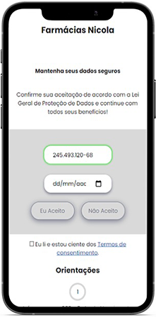 Após realizado a leitura do QR Code, o cliente será redirecionado para o portal LGPD da farmácia/drogaria em questão.