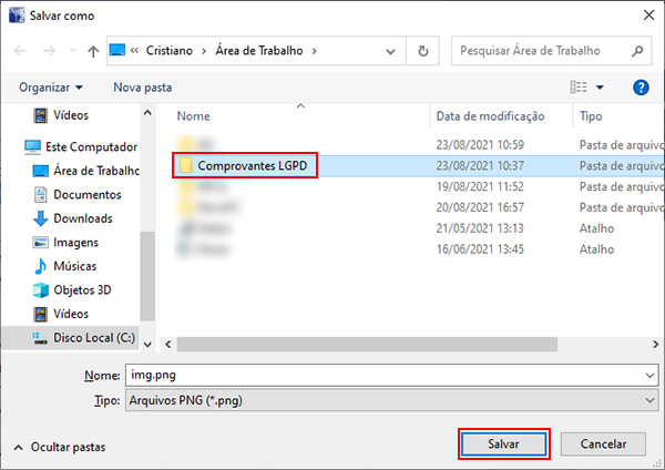 Você poderá exportar o arquivo salvo e o sistema abrirá automaticamente o mesmo no visualizador correspondente do Windows.