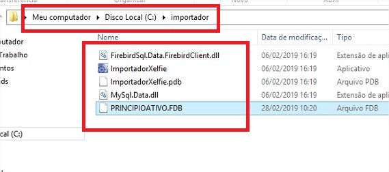 4º - Criar uma pasta no diretório C:\ com o nome ‘Importador’ e colocar dentro da mesma os arquivos do importador, que se encontram em \\fileserver\Importador\ImportadorXelfie.