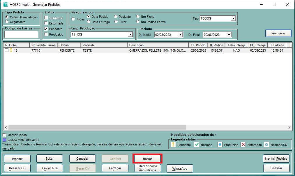 Baixar - Conclui a pesagem, realizando a saída do estoque