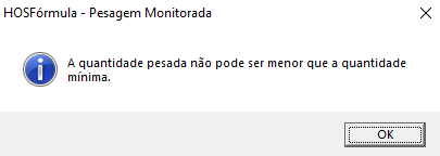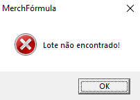 Esta mensagem pode aparecer, se for realizada a leitura do código de barras incorreto (lote ou matéria divergentes);