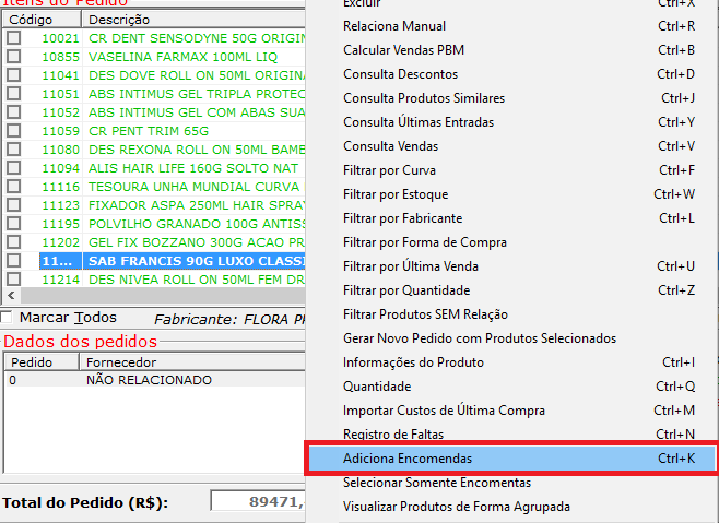 Os produtos encomendados podem ser carregados da tela de venda/orçamento automaticamente.