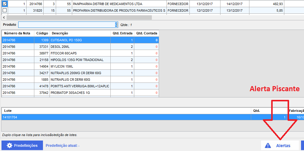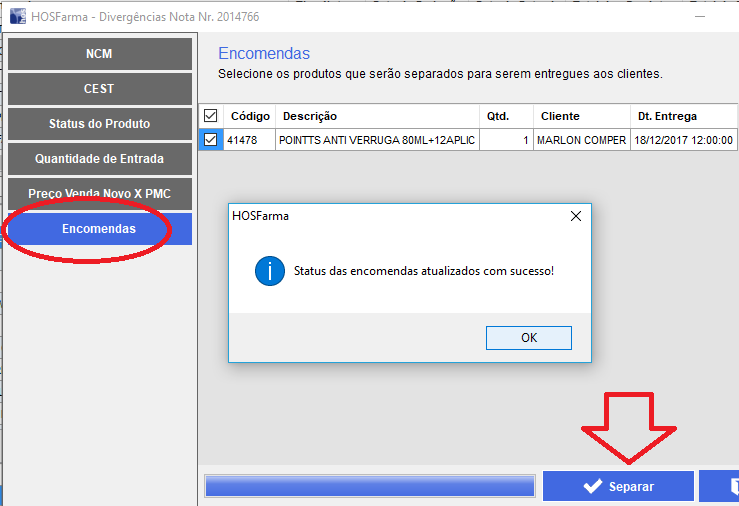 No momento da conferência da nota fiscal de entrada, o sistema ALERTA sobre a encomenda.