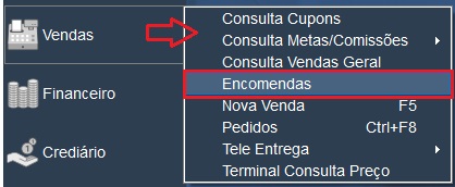 Acessar o menu Vendas no HOS Farma, opção Encomendas