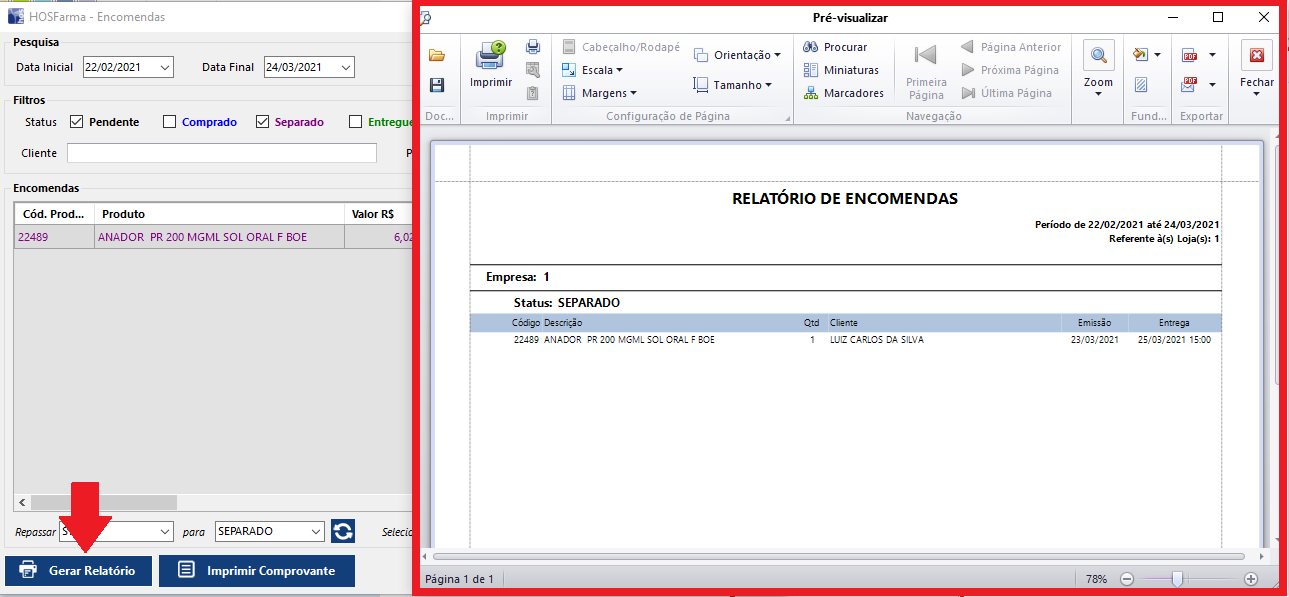 Com base nos filtros feitos nas pesquisas das encomendas, é possível gerar relatórios dos registros.