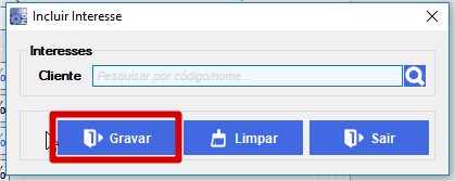 2 - Realizar a busca do cliente que teve interesse no produto e clicar no botão "Gravar".
